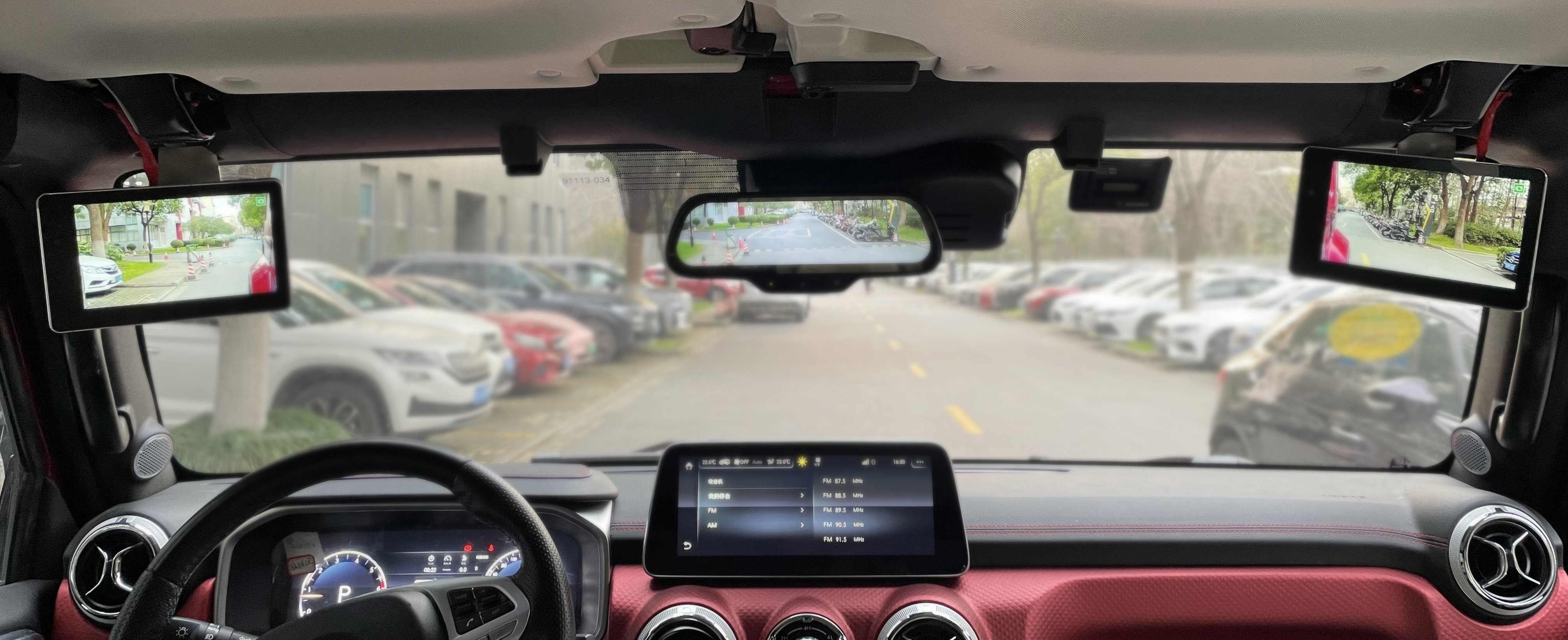 歐菲光自研電子后視鏡的左右外支臂各配備一顆帶加熱功能的2M攝像頭,艙內采用兩塊7英寸顯示幕,具備快啟動、低延時、大視野、優畫質、多功能和高可靠等特點。